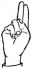 На ћирилици написано САВА ЛУДОШКИ састоји се из 11 слова [?]. Исписано ћириличном једноручном азбуком за глувонеме: